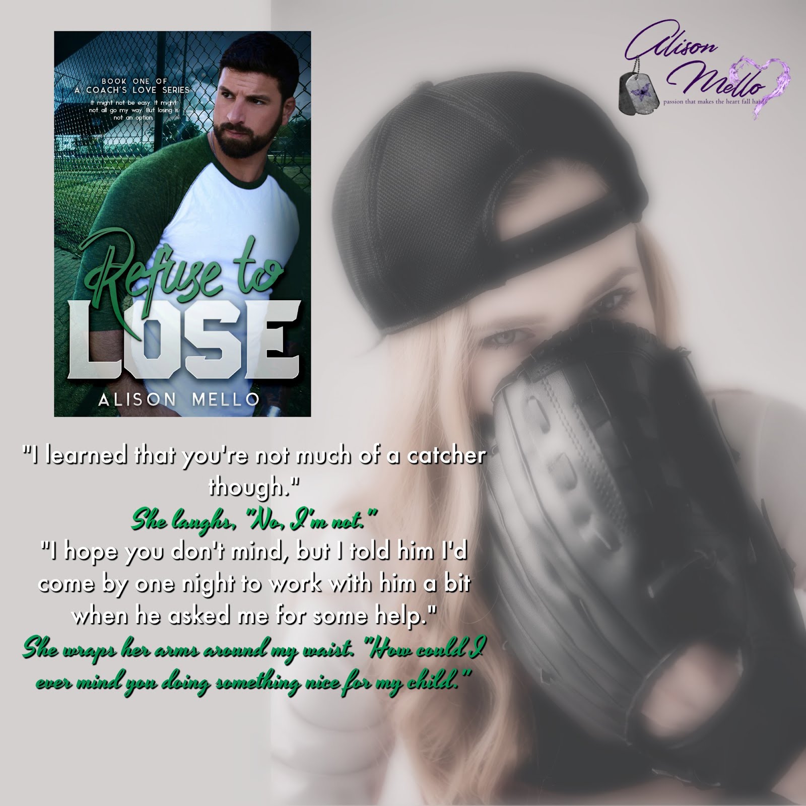 Married to her own real life hero, Alison lives with her amazing family in Massachusetts where she was born and raised. She loves having her own personal inspiration right at home and when she’s not writing she enjoys playing soccer, basketball, and football with her son.